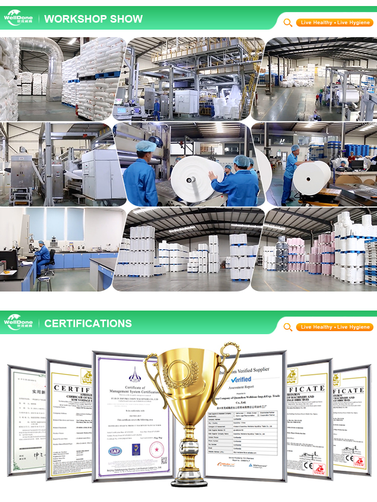 WELLDONE अग्रणी कंपनियों में से एक है, जो जिंजीयांग शहर, फ़ुज़ियान प्रांत, चीन में स्थित डिस्पोजेबल स्वच्छता उत्पाद क्षेत्र में ग्राहक के लिए ए-जेड सेवा की आपूर्ति पर केंद्रित है।