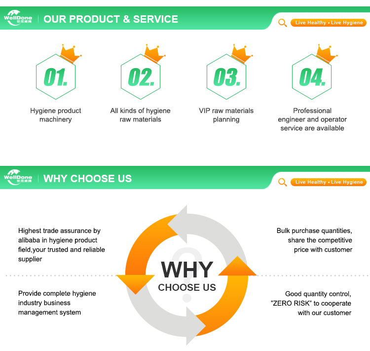 WELLDONE अग्रणी कंपनियों में से एक है, जो जिंजीयांग शहर, फ़ुज़ियान प्रांत, चीन में स्थित डिस्पोजेबल स्वच्छता उत्पाद क्षेत्र में ग्राहक के लिए ए-जेड सेवा की आपूर्ति पर केंद्रित है।
