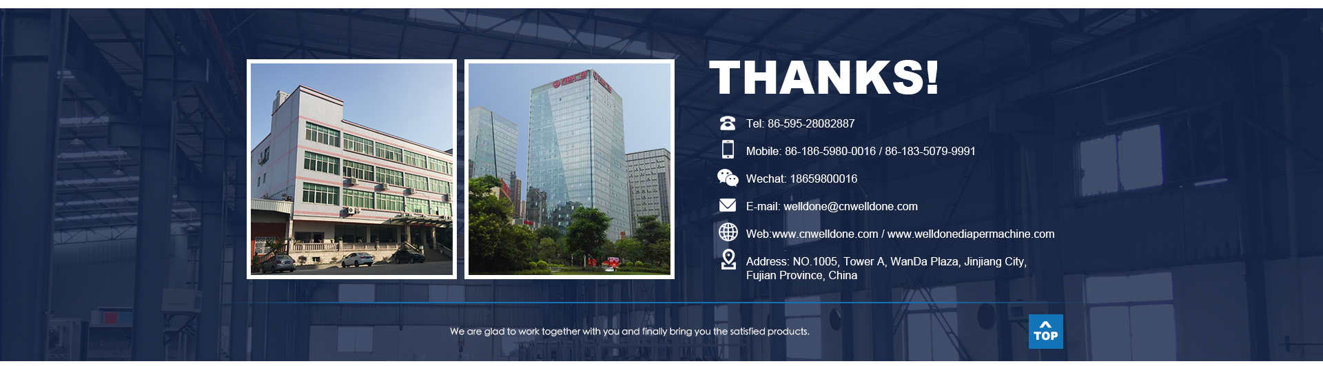 WELLDONE अग्रणी कंपनियों में से एक है, जो जिंजीयांग शहर, फ़ुज़ियान प्रांत, चीन में स्थित डिस्पोजेबल स्वच्छता उत्पाद क्षेत्र में ग्राहक के लिए ए-जेड सेवा की आपूर्ति पर केंद्रित है।